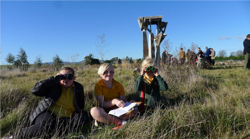 University researchers, restoration ecologists, artists and the school community came together to share their skills and knowledge with students from Oatlands and Campbell Town. More than 200 people participated in the Biodiversity Day at Oatlands; 70 people attended the Big Biodiversity Night Out at Merton Vale in Campbell Town, and this was followed by a BIG Day Out on 8 September at Ross with 30 Campbell Town Students working with 70 Architecture and Design Students from the University of Tasmania to build ‘Species hotels’, sculptural works to highlight the planted habitats for the threatened species in the Midlands Biodiversity Hot Spot. These will be established as a sculpture trail at Ross. Campbell Town students also planted 200 trees on a site next to the proposed Sculpture Park.