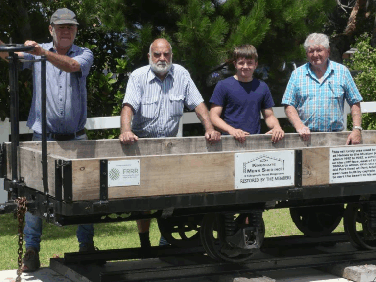 28 Sep 2022 – The Kingscote Men’s Shed received a $3,683 Strengthening Rural Communities grant to support recovery from the 2019/20 bushfires that devastated much of Kangaroo Island, by restoring an historic jetty trolley.