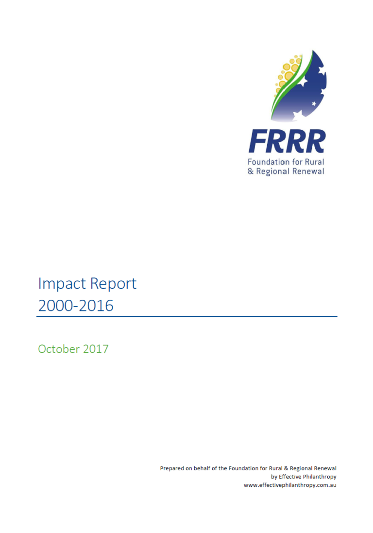Oct 2017 – This Report, which has been compiled with the generous support of the Sidney Myer Fund, provides anoverview of the grant making activity that FRRR undertook from the time of its establishment untilDecember 2016.