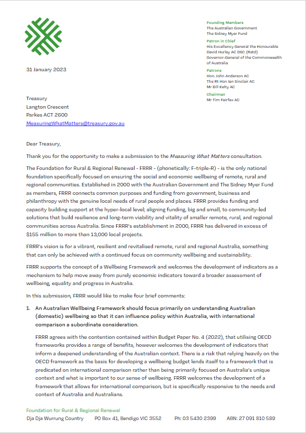 May 2023 – The Government’s pledge to work with the philanthropic, not-for-profit and business sectors to develop a Strategy to Double Giving to Charity by 2030 is a rare opportunity. The Government has asked the Productivity Commission to undertake an inquiry into philanthropy and make recommendations on future policy initiatives. FRRR appreciates the opportunity to make a submissions…